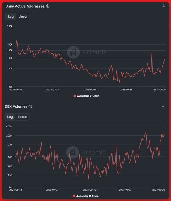 ➜ Ao analisar a atividade onchain, vale ressaltar que os endereços ativos aumentaram 300%. ➜ Além disso, os volumes de DEX experimentaram um aumento impressionante de 2.000%, de US$ 10 milhões para US$ 200 milhões. Isto representa um dos picos de atividade mais significativos observados em todas as cadeias.