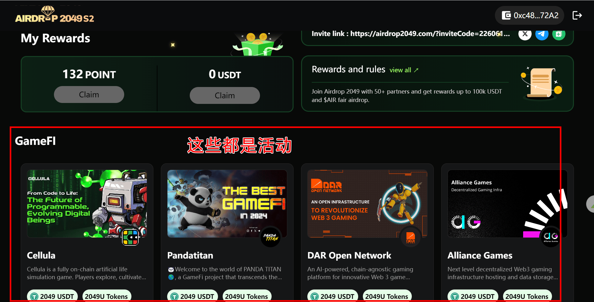 Airdrop 1: Cada projeto oferece 2049 USDT como prêmio.