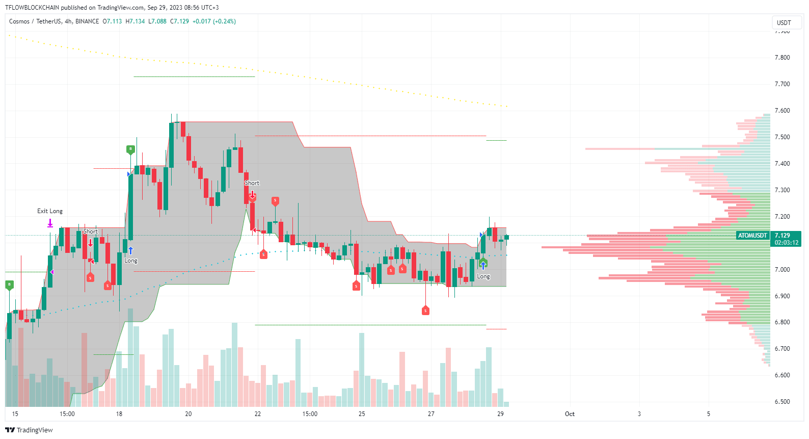 ATOM está em uma posição longa agora, depois de fechar a posição curta anterior com um pequeno lucro.