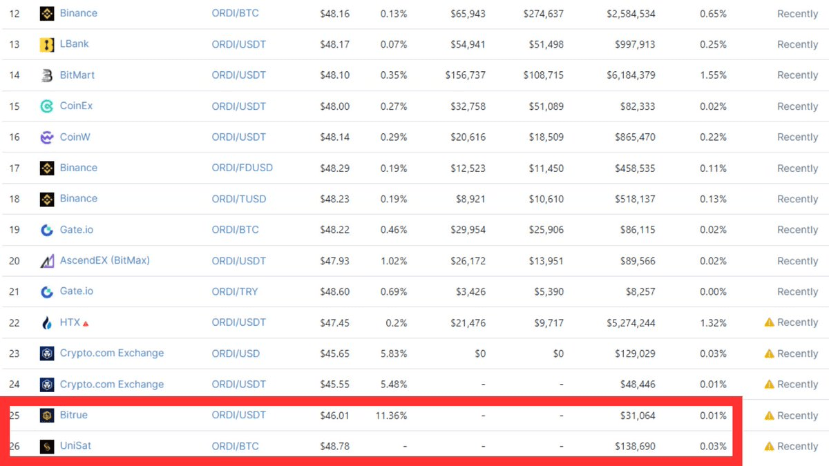 O maior problema que a rede BRC-20 enfrenta atualmente é a liquidez. Muitos pares BRC-20 simplesmente não negociam com liquidez suficiente para quaisquer negociações consideráveis. Isso pode ser visto pela forma como $ORDI, que tem mais de $ 300 milhões de CEX vol diariamente, tem apenas < $ 200 mil vol em unisat_wallet.
