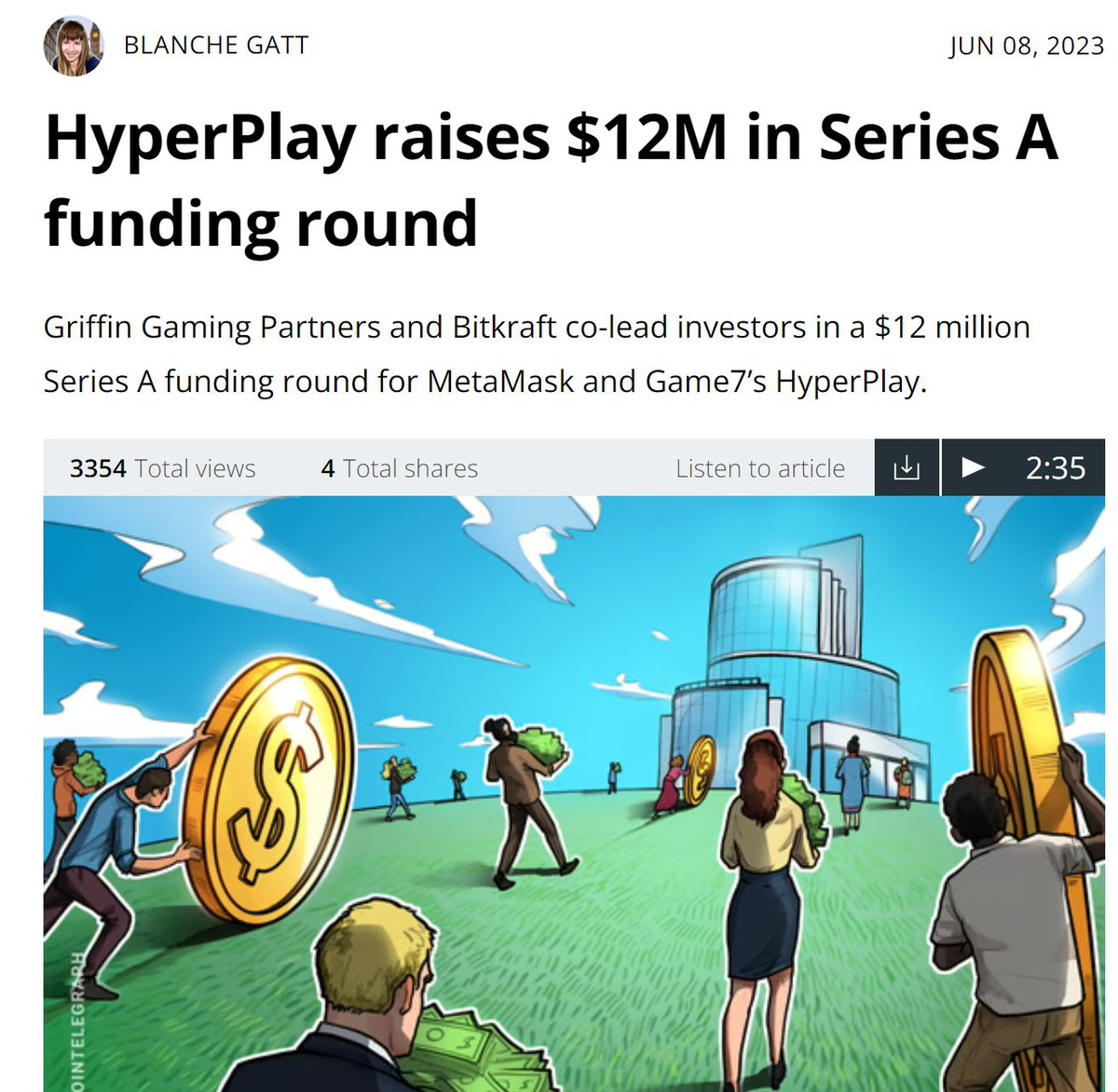 7.HyperPlayGaming: um iniciador de jogos nativo da web3 e um agregador de lojas de jogos. Ele permite que você leve sua carteira, tokens e NFTs para todos os jogos nativos ou de navegador. Um projeto legal sobre o qual terei que pesquisar mais quando tiver tempo.
