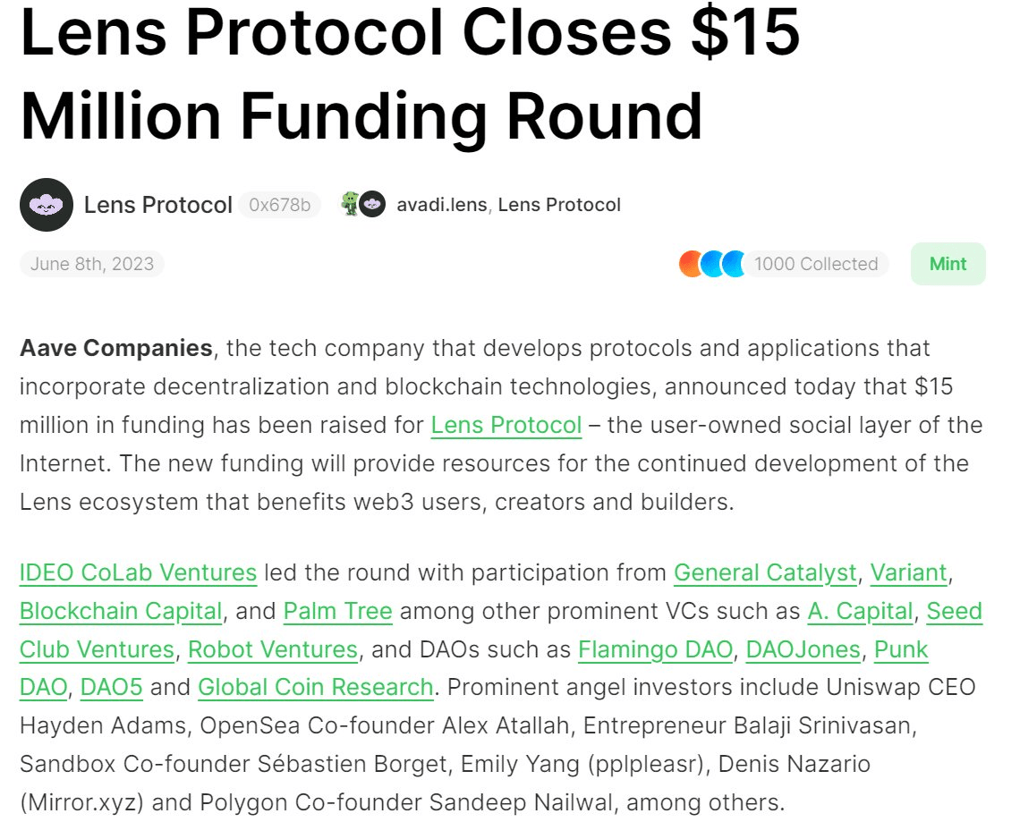 Lens é um gráfico social Web3 no Polygon. Eles estão construindo a tecnologia que alimenta a versão Web 3.0 das mídias sociais. Com o Lens, você pode realmente “possuir seus seguidores”, da mesma forma que você pode possuir “ativos no jogo” nos jogos da Web 3.0.