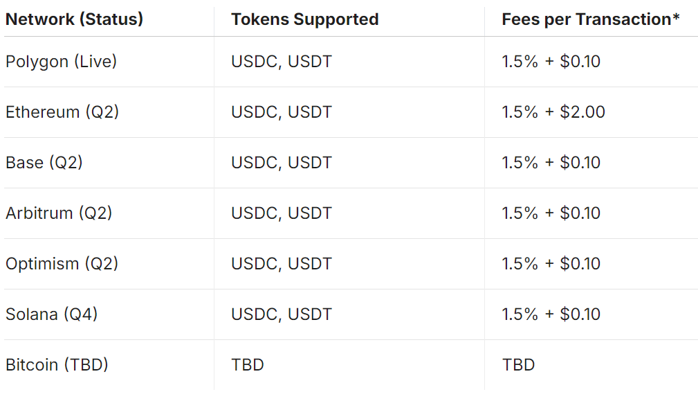 Para muitas startups e pequenas empresas, especialmente na África, economizar em taxas de transação é crucial. Com plataformas como PayPal e Stripe cobrando de 4,5% a 5% por transação, a estrutura de preços da Coinsub é uma lufada de ar fresco. A Coinsub cobra apenas 1,5% por transação mais US$ 0,10 na maioria das redes, tornando-a uma solução muito mais econômica.