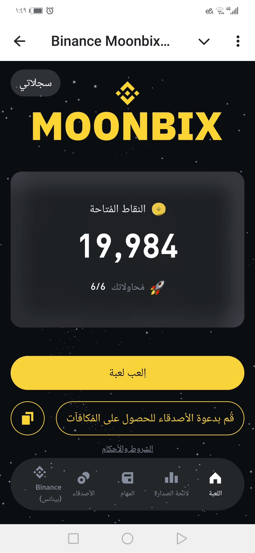 3- E tenha em mente a tarefa de vincular sua conta no Binance. Essa tarefa por si só lhe dará 10.000 pontos. Você deve fazer isso, e não se preocupe porque a própria plataforma anunciou esse bot em sua página do Twitter, e isso é uma prova porque. na primeira vez que você ganhar uma recompensa, ela será imediatamente creditada em sua conta. Não, você deve realizar esta tarefa de vinculação para ganhar 10.000 e a cada hora começar a jogar. Ganhe pontos e não tenha preguiça porque este bot, se Deus quiser, será o início do nosso caminho para a negociação