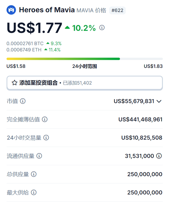 O valor de mercado atual do token é de 55 milhões e o valor de mercado do FDV é de 440 milhões. O volume de negociação em 24 horas é de 1000W.