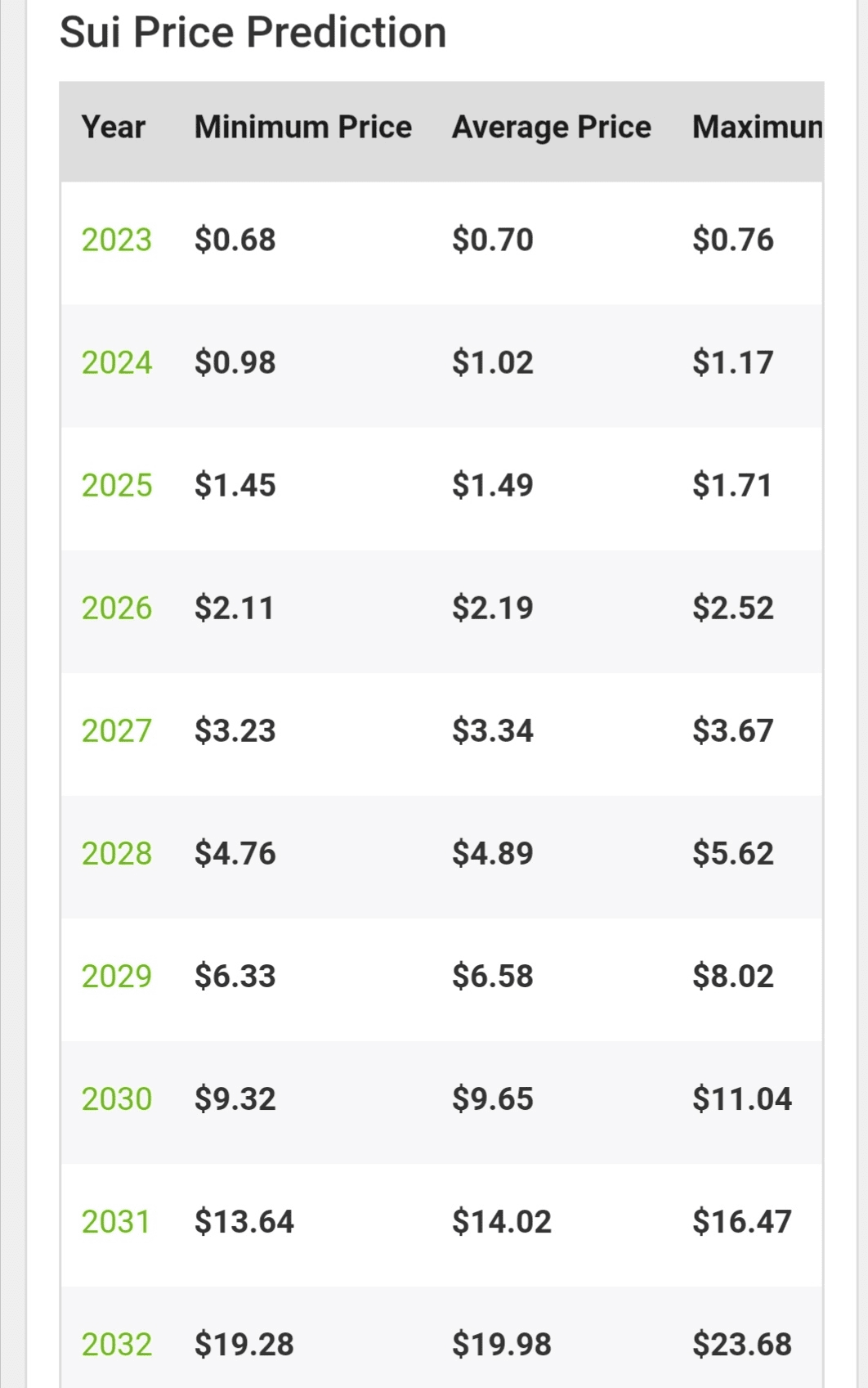 Previsão/previsão de preços Sui (SUI) para 2023, 2024, 2025 e 2030