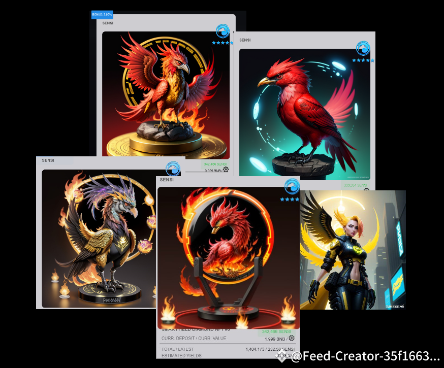 Como funciona? Basta depositar seu $BNB , selecionar seu nível de categoria preferido (cada um requer um valor diferente de tokens SENSI) e você está pronto! Receba instantaneamente seu exclusivo NFT SY, que representa seu investimento. A partir daí, seu BNB começará automaticamente a trabalhar em 10–15 pools de liquidez, gerando um impressionante APR. Além disso, seus tokens SENSI permanecem bloqueados no NFT, aumentando seus benefícios de categoria.