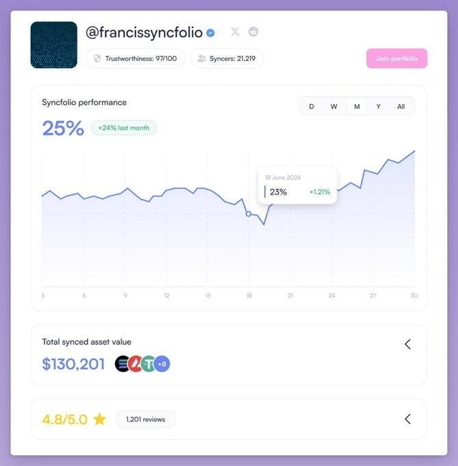Não se trata apenas de seguir as negociações de outra pessoa — o Sync.Fun oferece um sistema ganha-ganha onde tanto os criadores do Syncfolio quanto os seguidores se beneficiam.