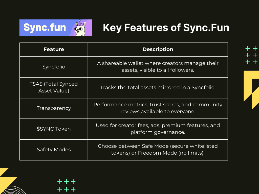 Essa configuração significa que, à medida que mais usuários sincronizam suas carteiras e criadores criam portfólios, a demanda por $SYNC cresce, enquanto sua oferta diminui — um ganho para todos que possuem o token.