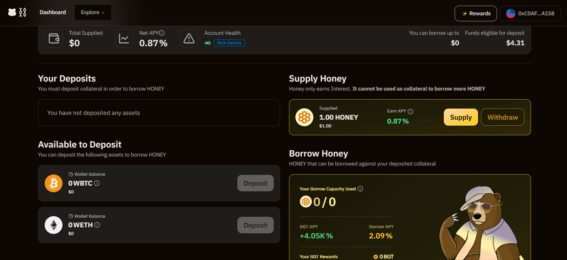 • Navegue até https://bartio.bend.berachain.com/dashboard/