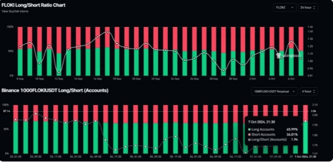 Apesar de uma perspectiva positiva, as métricas on-chain da FLOKI sugerem um sentimento misto. De acordo com a empresa de análise on-chain Coinglass, a relação Long/Short da FLOKI está atualmente em 1,048, indicando um sentimento de mercado otimista entre os traders. Um valor de relação acima de 1 é considerado um sinal positivo.