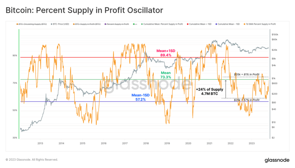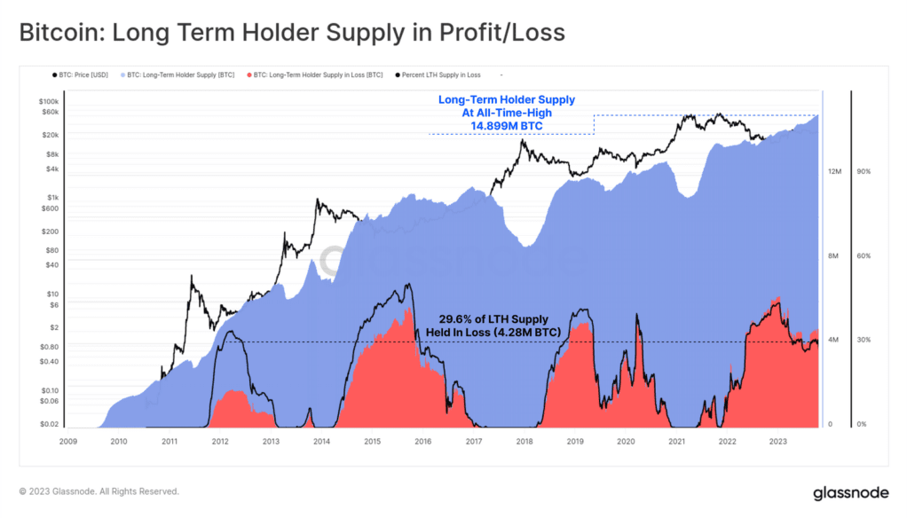 recuperou para um nível neutro e está prestes a entrar numa zona positiva, onde a “base de custos” das moedas gastas ultrapassará a dos Bitcoins mantidos em carteiras. A alta do ouro digital colocou as moedas detidas pelos hodlers em uma posição positiva. A sua participação aumentou de 57% para 81%. Em termos absolutos, este número aumentou 4,7 milhões de BTC, o equivalente a 24% da oferta atual. Essas métricas fornecem informações sobre quantas moedas foram adicionadas às carteiras na faixa de US$ 27.000 a US$ 35.000. A subida dos preços não provocou uma reacção forte entre os investidores de longo prazo. O número de moedas que possuem atingiu um novo recorde histórico de 14,899 milhões de BTC. O crescimento contínuo desta métrica indica que uma oferta maior está a amadurecer em “condições hodler” do que a que está a ser gasta.