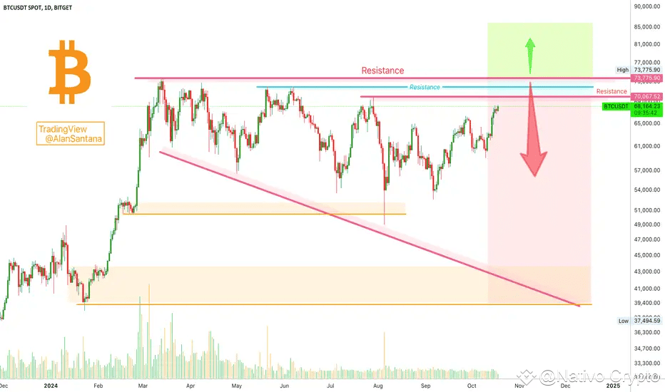 Enquanto o Bitcoin permanecer abaixo de US$ 74.000, há uma forte possibilidade de uma queda repentina, mas após quebrar 70/71.000, o cenário de baixa mais baixa se torna menos provável.