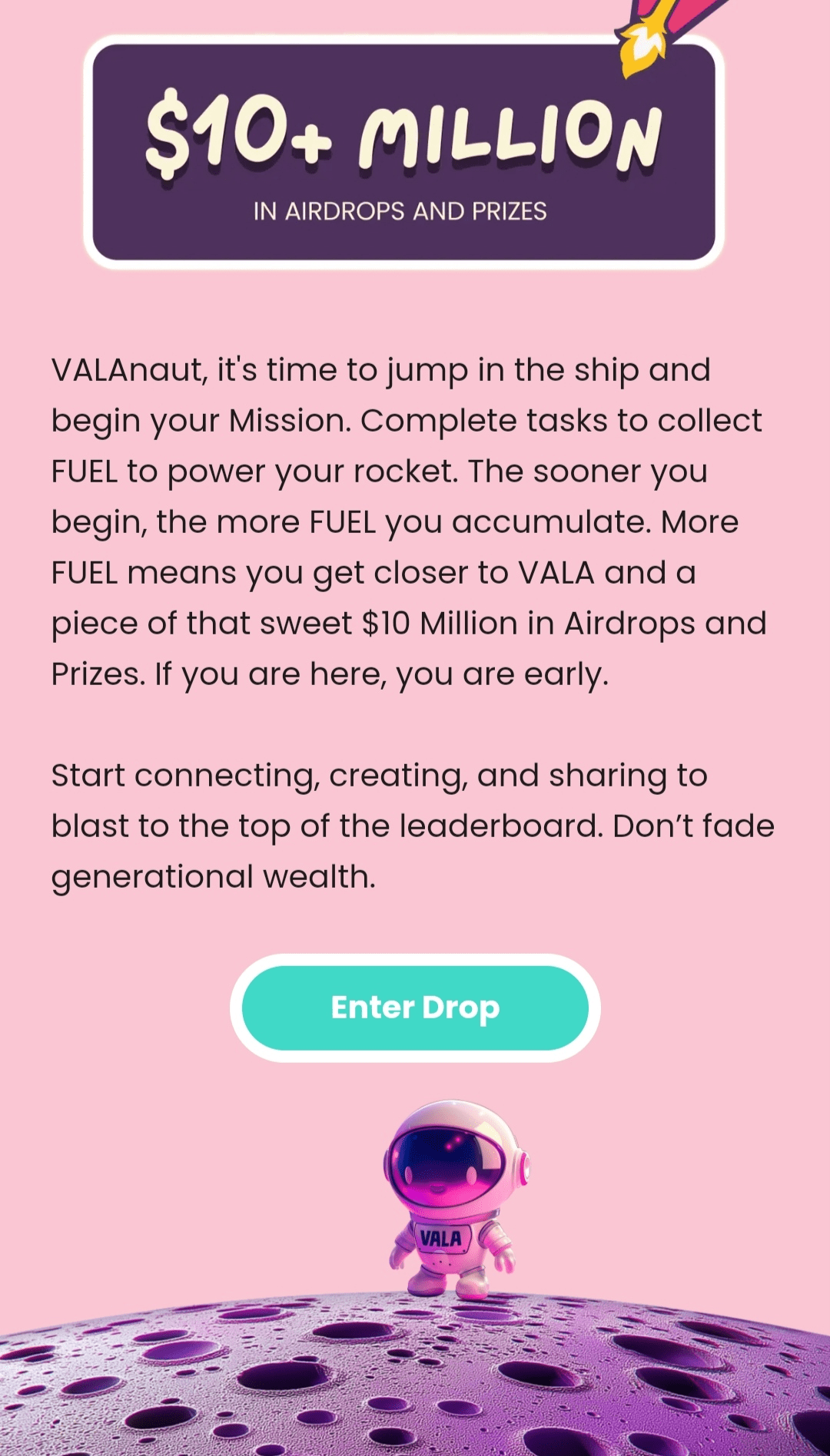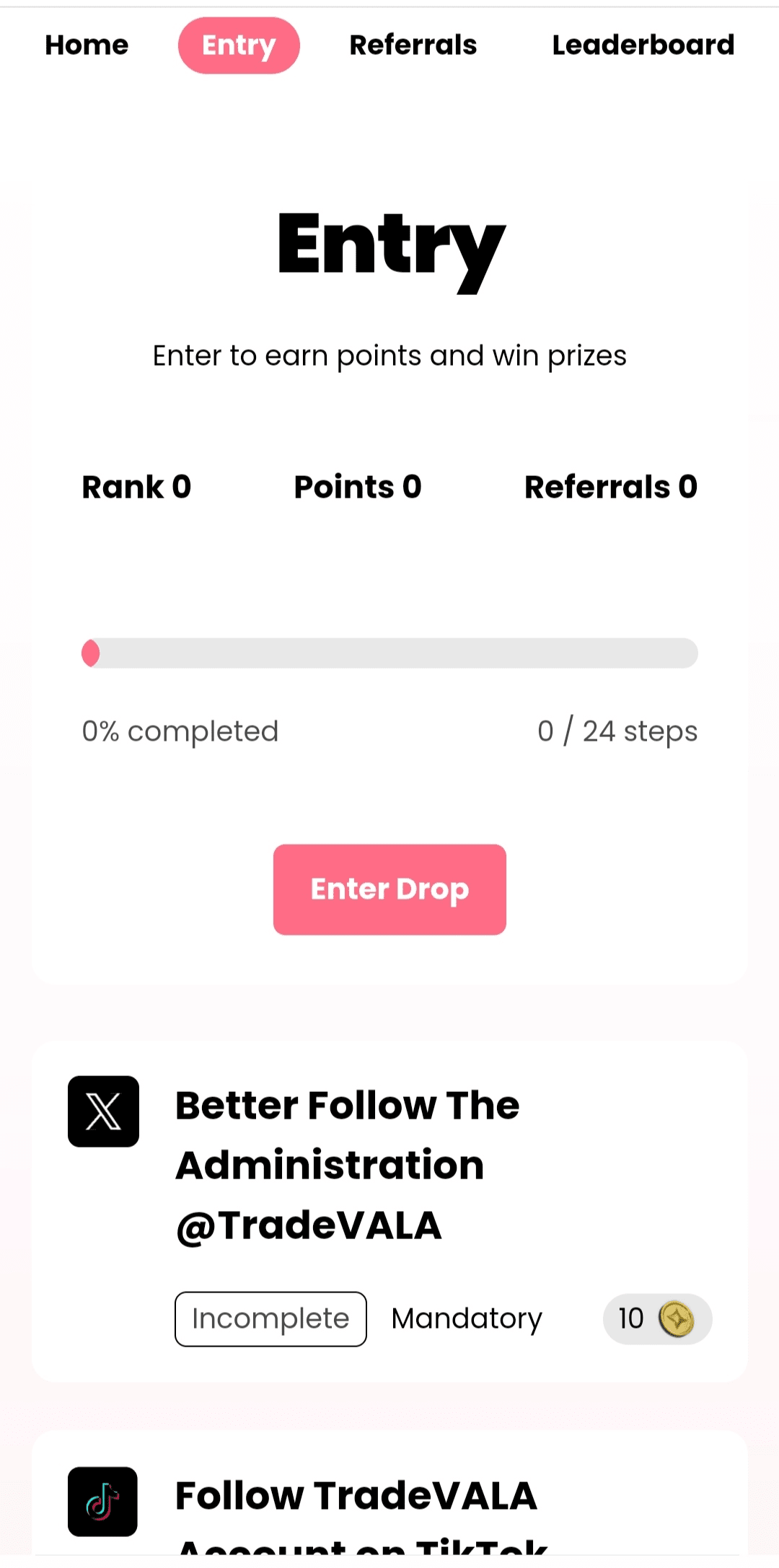 Vala é um aplicativo de negociação social descentralizado, apenas imagine um tiktok onde você pode negociar cripto, incluindo memes e outros alphas em um único aplicativo.