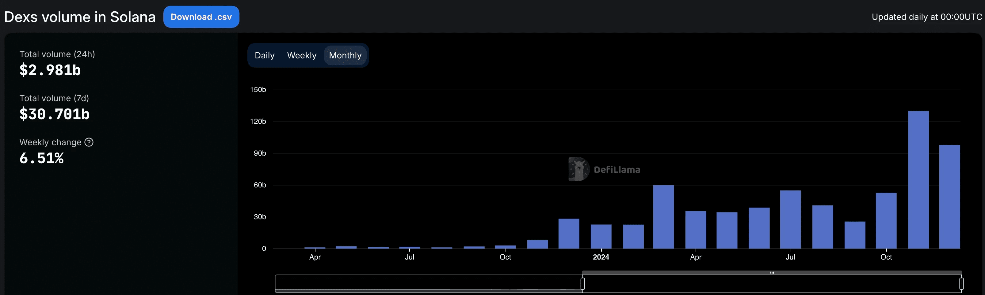 De acordo com a DeFi Llama, os $SOL protocolos do Solana na indústria de troca descentralizada foram os mais ativos em dezembro.