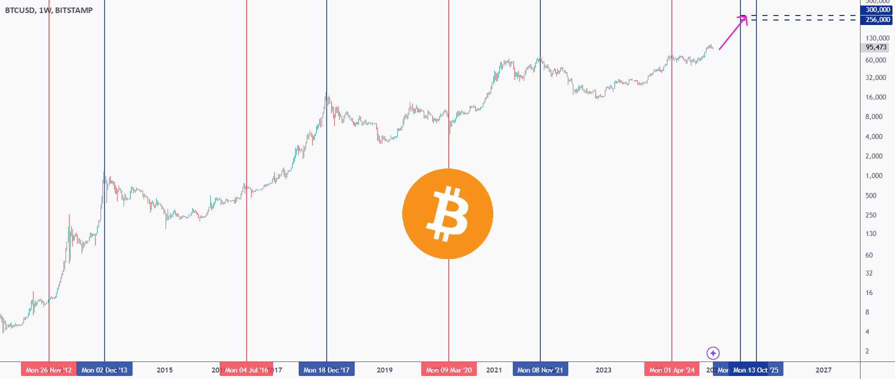 - Halving de 2024 → Topo projetado de 2025: