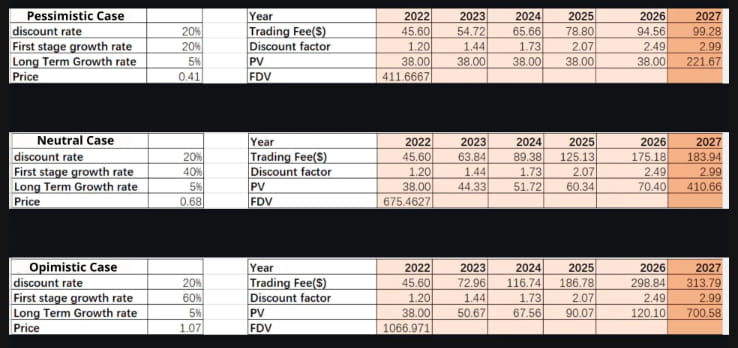 A avaliação para o setor criptográfico é sempre um problema, uma vez que as pessoas não conseguem avaliar a maioria dos projetos criptográficos com métodos de análise financeira comumente vistos nas finanças tradicionais. Felizmente, é mais fácil avaliar uma plataforma de câmbio, pois possui modelos de lucro e fluxo de caixa de receitas estáveis, o que nos ajuda a identificar projetos subvalorizados e superfaturados. Analisarei X2Y2 usando Análise Comparável e Análise DCF abaixo.