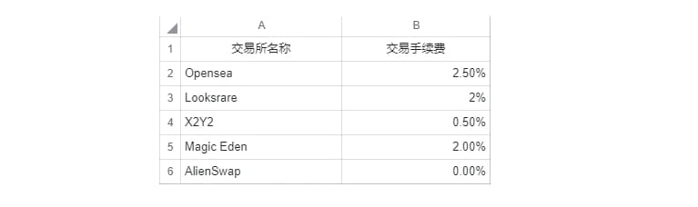 Vamos falar primeiro sobre as taxas de transação, a Opensea, como a bolsa líder com monopólio, cobra a taxa de transação mais alta do setor, de 2,5%, e basicamente estabelece um limite para a cobrança de taxas para os retardatários, Looksrare e X2Y2 estabeleceram transações mais baixas. taxas para competir pelo mercado, e há muitas bolsas no mercado, como Blur e Alienswap, aderindo a esta guerra de preços sob a bandeira de taxas de transação de 0%.