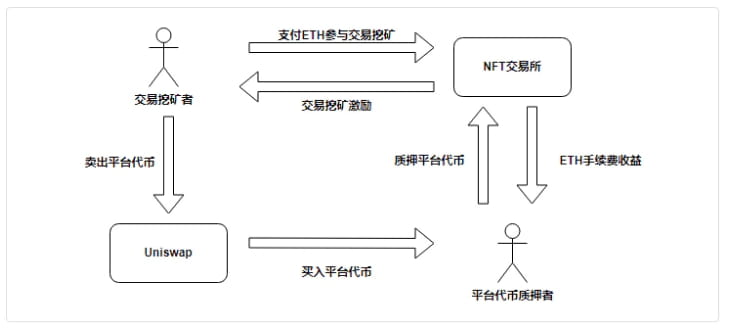 Os incentivos de mineração de transações foram usados pela primeira vez no campo DeFi, e o dYdX é um dos líderes. No entanto, a mineração de transações em transações contratuais ajuda a melhorar a liquidez e permite que os preços sejam totalmente descobertos. Por um lado, os participantes na negociação mineira envolvem-se na arbitragem mineira, por outro lado, também contribuem com liquidez para a plataforma e tornam-se contrapartes de comerciantes reais; Quanto à mineração de transações NFT, o método de transação dos mineiros consiste principalmente em transações à esquerda e à direita entre duas carteiras, o que não contribui para a liquidez do NFT.
