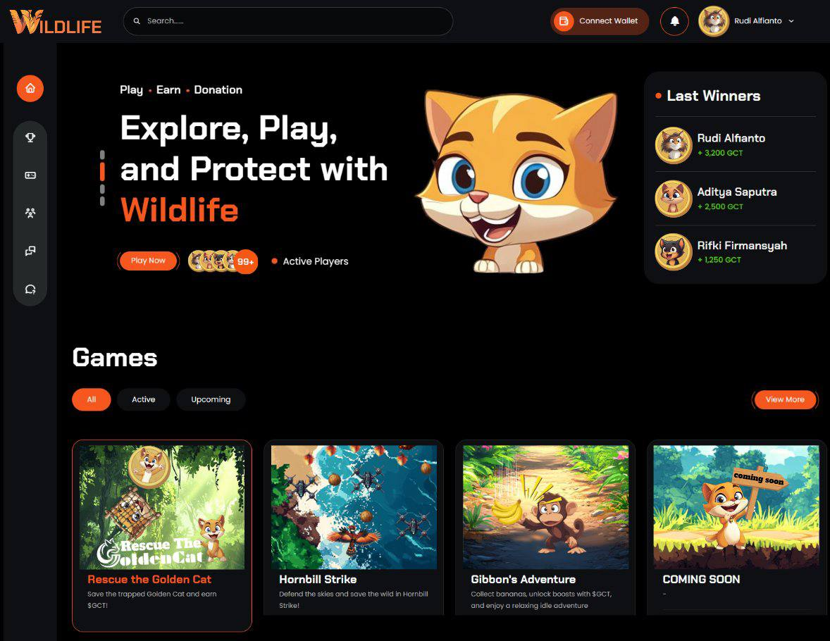 O Wildlife Game é uma plataforma de blockchain centrada em jogos que integra múltiplos jogos, apoia o gerenciamento de recompensas, o engajamento da comunidade e projetos de conservação ambiental.