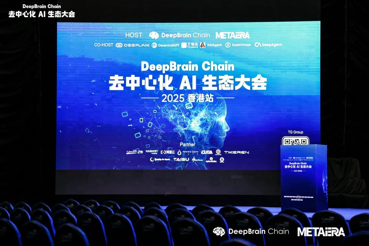 2025 年 2 月 20 日,DeepBrain Chain 去中心化 AI 生态大会・2025 香港站在香港数码港商场 Cyber Arena 成功举办。此次活动由 DeepBrain Chain 和 MetaEra 联合主办,并得到了 DeepLink、DecentralGPT、万物岛、XAIAgent, SuperImage 和 DeepAgent 等多家公司的协办支持。