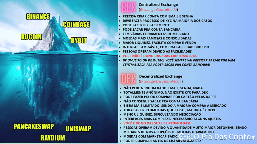 Porém, as exchanges centralizadas (CEX) possuem uma quantidade pequena de criptomoedas quando comparado as descentralizadas (DEX). Isso porque, para uma Binance listar uma criptomoeda, essa deve cumprir vários requisitos de segurança, ter bom volume de negociação entre outros fatores em auditoria de segurança, e quando a moeda deixa de cumprir algum requisito, a Binance pode vir e deslistar ela. Por isso, o ambiente mais seguro para o novato operar será sempre dentro de uma centralizada.