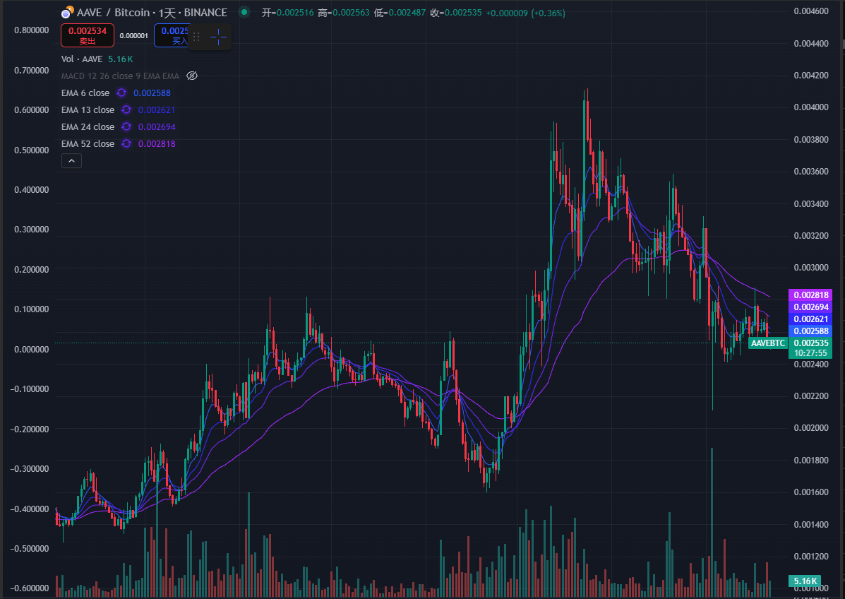 Taxa de câmbio AAVE/BTC Fonte: Tradingview