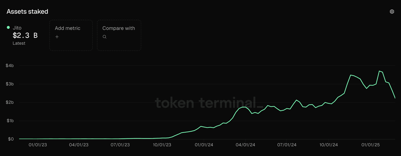 Atualmente, os ativos apostados da Jito (aposta líquida) excedem US$ 2,5 bilhões.