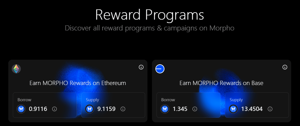 Painel de incentivos de token da Morpho Fonte: https://rewards.morpho.org/