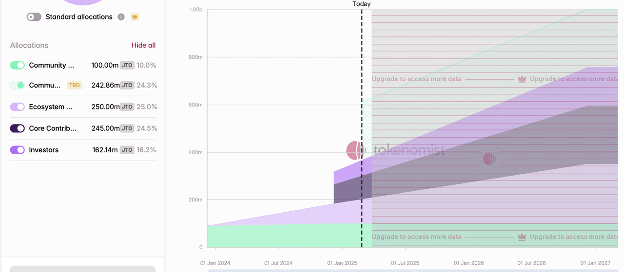 Do ponto de vista do investimento, outro risco potencial é a taxa de circulação dos tokens JTO, que é inferior a 40%. Um desbloqueio significativo de 15% ocorreu em dezembro passado, e haverá desbloqueio linear contínuo nos próximos dois anos, com uma taxa de inflação de 62% no próximo ano. A pressão de venda dos primeiros investidores também é um fator de risco potencial.