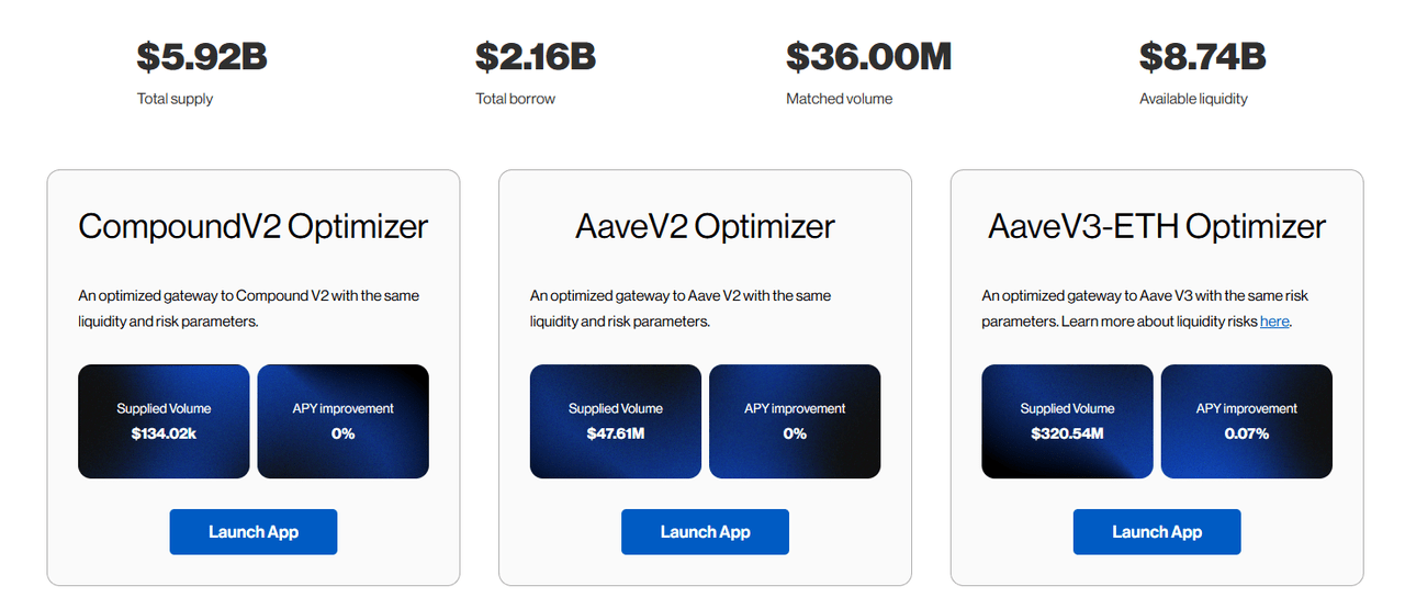 Como o produto de primeira geração da Morpho, os Otimizadores Morpho acumularam usuários e fundos significativos, ajudando a Morpho Blue a evitar um início frio. No entanto, apesar de ainda manter fundos substanciais, a otimização da taxa de juros de seu recurso de correspondência tornou-se insignificante. Este produto não é mais um foco no desenvolvimento da Morpho e parou de permitir novos depósitos e empréstimos desde dezembro do ano passado.