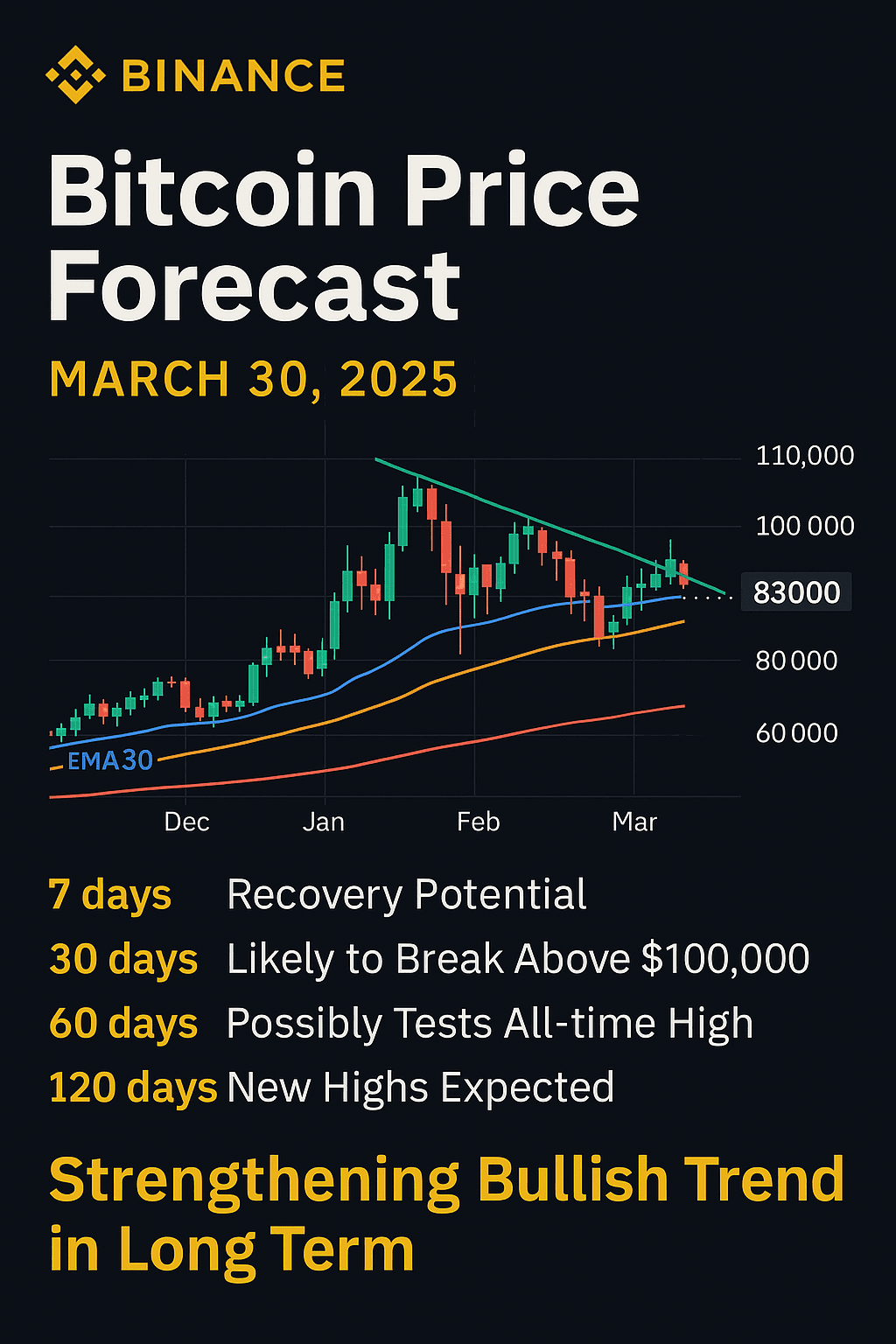 截至2025年3月30日,BTC/USDT 在Binance永续合约市场的价格约为83,000 USDT。相比一个月前创下的历史高点 (~109,000 USDT),当前价格回调幅度约30%,引发市场对比特币所处周期的多空争论 。