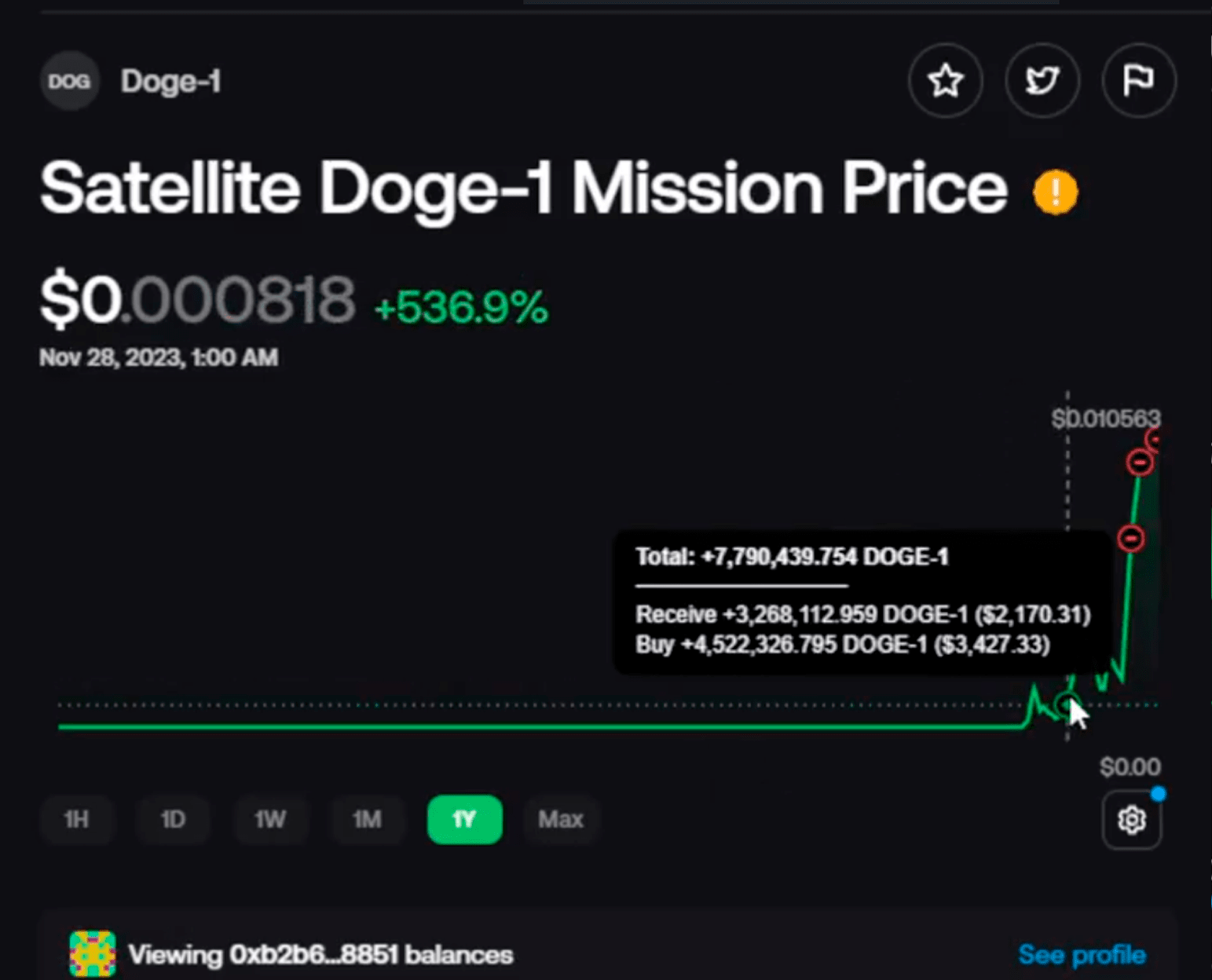 On November 28th, he bought: 7,790,439 DOGE-1 (~$4,756)