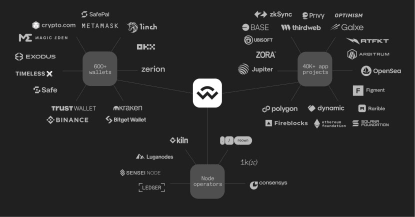 WalletConnect (WCT) é um protocolo de comunicação de código aberto para o ecossistema Web3, projetado para conectar carteiras de usuários e dApps através de uma infraestrutura descentralizada entre cadeias. Ele suporta mais de 600 carteiras e mais de 60.000 aplicações, cobrindo mais de 20 cadeias públicas, como Ethereum e Solana, e processa uma média de 120 milhões de solicitações de conexão por dia. O token WCT não é apenas uma ferramenta de governança para a rede, mas também promove a expansão ecológica através de mecanismos de staking e incentivos.