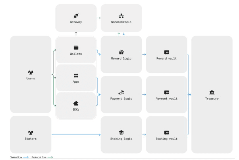 Nós de gateway: responsáveis pelo balanceamento de carga e roteamento de mensagens, semelhante ao CDN da Internet, para garantir baixa latência (<100ms).