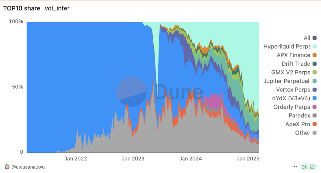 Hyperliquid já se estabeleceu como o líder dominante em exchanges de derivativos descentralizados.