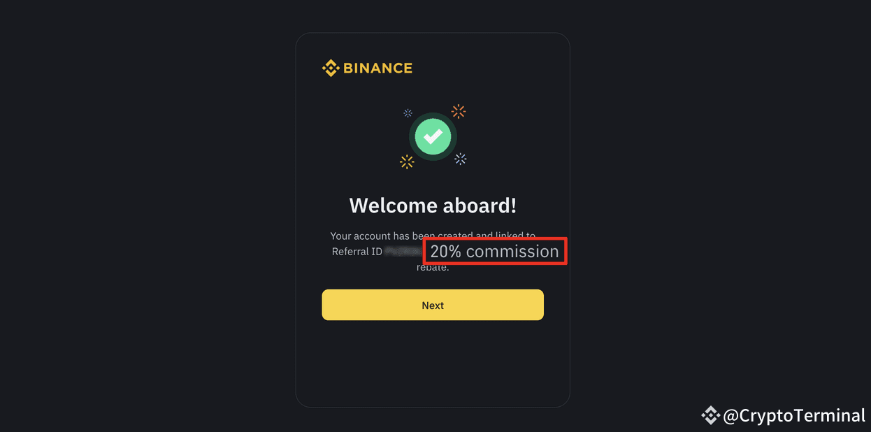 Use o código de referência da Binance AUJMIFSS durante o registro para obter 20% de desconto nas taxas de negociação à vista.