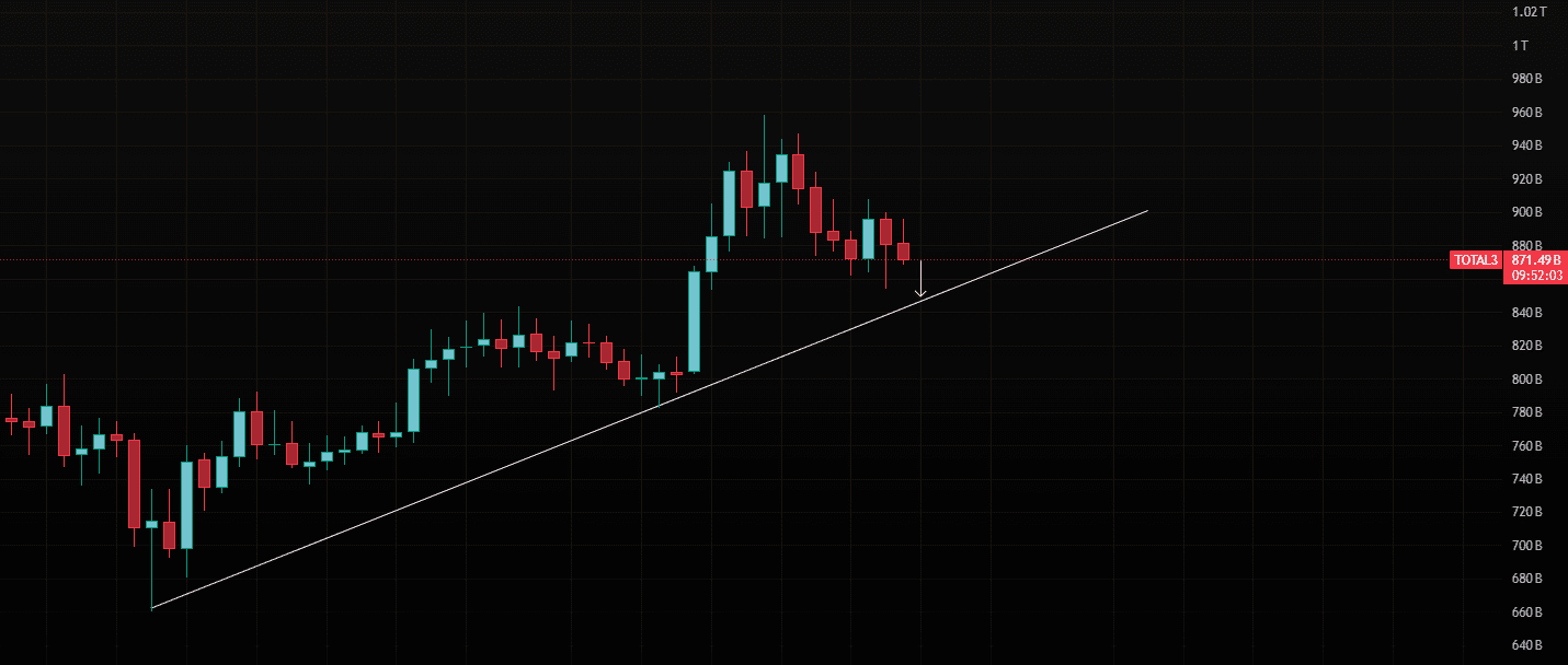 TOTAL3 deve cair até sua linha de tendência enquanto a correção está sendo feita.