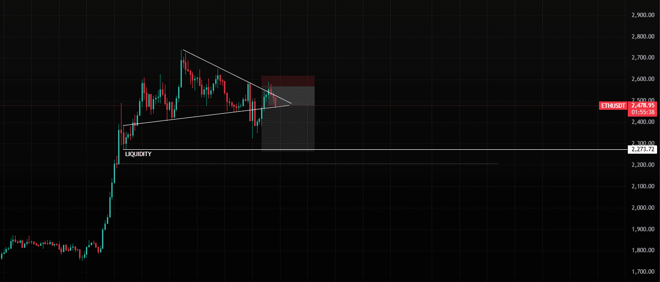 Como podemos ver, ETH criou com sucesso seu MS Bearish, eu vendi em uma resistência. Atualmente, estamos vendo alguma fraqueza aqui. Apenas os Moonboys estão comprando aqui, nenhuma entrada de dinheiro inteligente aqui é visível. ETH irá ao seu nível de liquidez em 2273 antes de ver outra perna para cima.