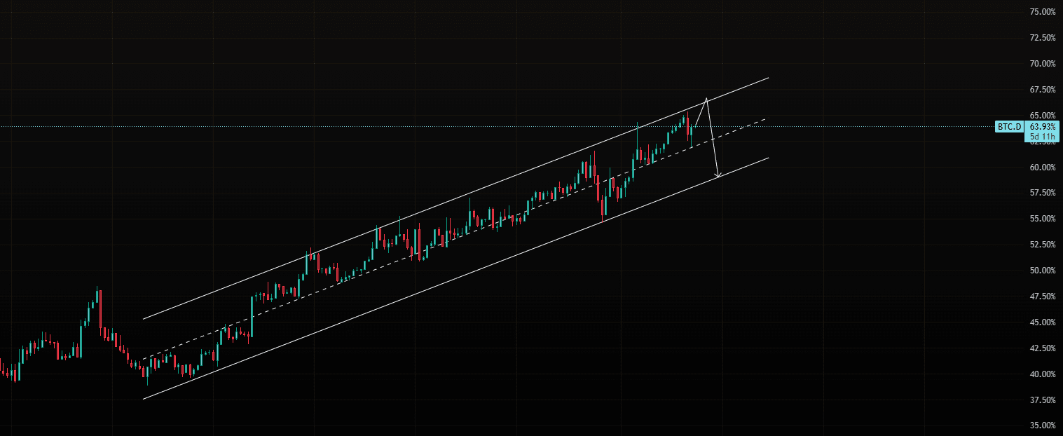 USDT.D tem um lindo Wedge de Queda, que provavelmente vai romper e veremos uma boa correção.