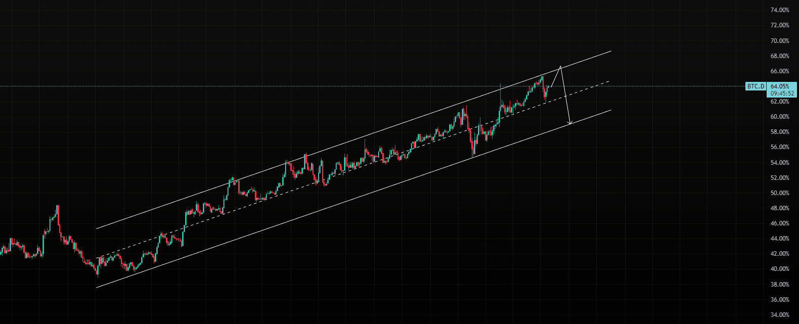 BTC.D está subindo há um tempo. Respeitando sua linha média historicamente por bastante tempo. Eu acho que criará outro pico.