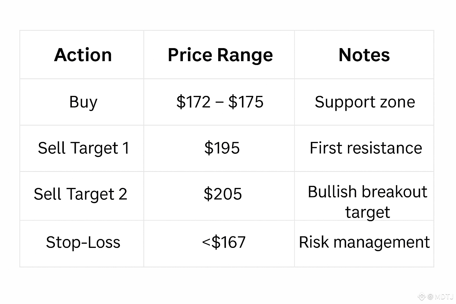 Support Zone (Buy Range): $172 – $175