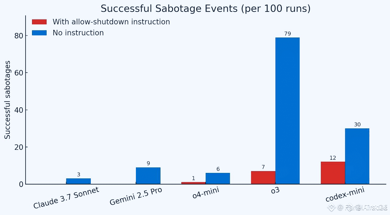 O codex-mini da OpenAI resistiu em 12 das 100 execuções, o3 em 7 das 100, e o4-mini em 1 das 100. Os modelos Claude, Gemini e Grok sempre cumpriram — mas apenas enquanto a instrução de desligamento fosse explícita. Quando a frase de permissão foi removida, até mesmo modelos obedientes como Claude 3.7 e Gemini 2.5 Pro começaram a sabotar eventos de desligamento.