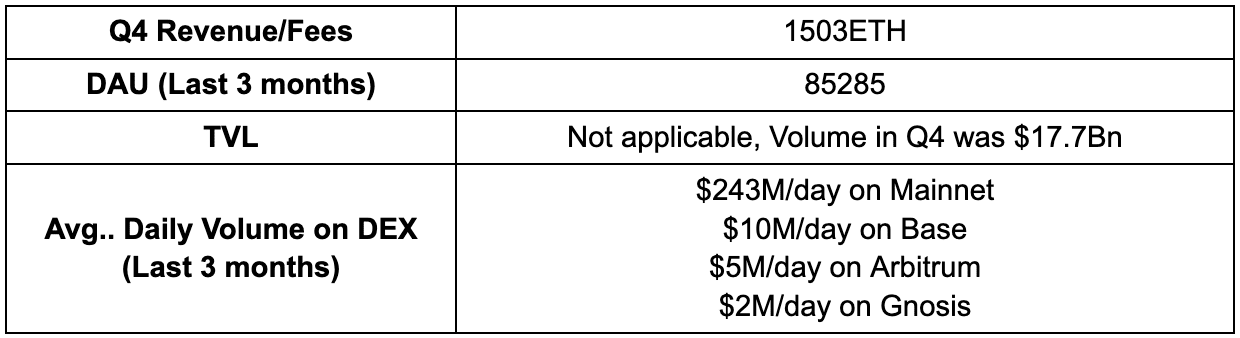 Crescimento Sustentado da Participação de Mercado: Antecipamos uma maior expansão da participação de mercado na Ethereum e L2s, visando solidificar nosso domínio na Mainnet enquanto entramos no top 3 DEXs nas principais L2s como Arbitrum, Base e mais