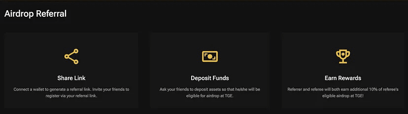 Furthermore, you can increase your points through the Referral system, offering a +10% bonus on your airdrop points. This translates to receiving an additional 10% of your daily earnings, creating a win-win scenario for everyone.