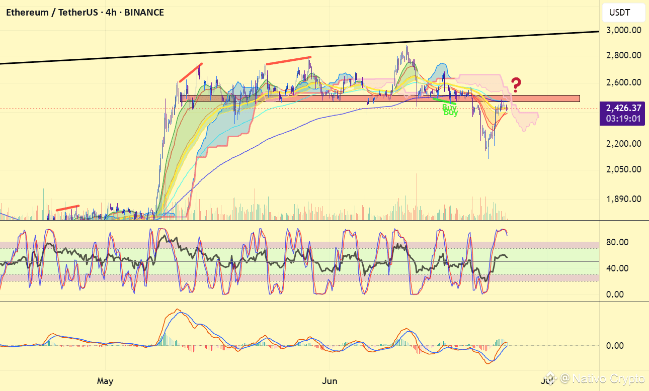 O preço do ethereum tem se movimentado em uma zona de distribuição e precisa romper pelo menos 3000$ para ser otimista e 3300$ para ser bullish. O preço #eth agora está passando por um reteste bearish onde rompeu a antiga zona de suporte e agora está testando a atual zona de resistência. A nuvem ichimoku de 4 horas deve ser rompida. Uma forte declinação desta zona pode causar quedas mais acentuadas.