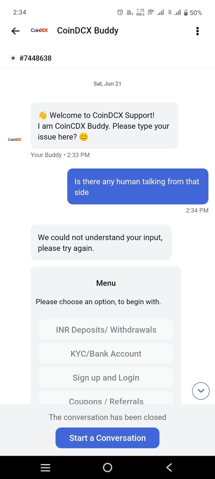 Revisão - Principalmente dirigida por bots. Sem chat ao vivo com um agente humano. Opções de suporte limitadas.