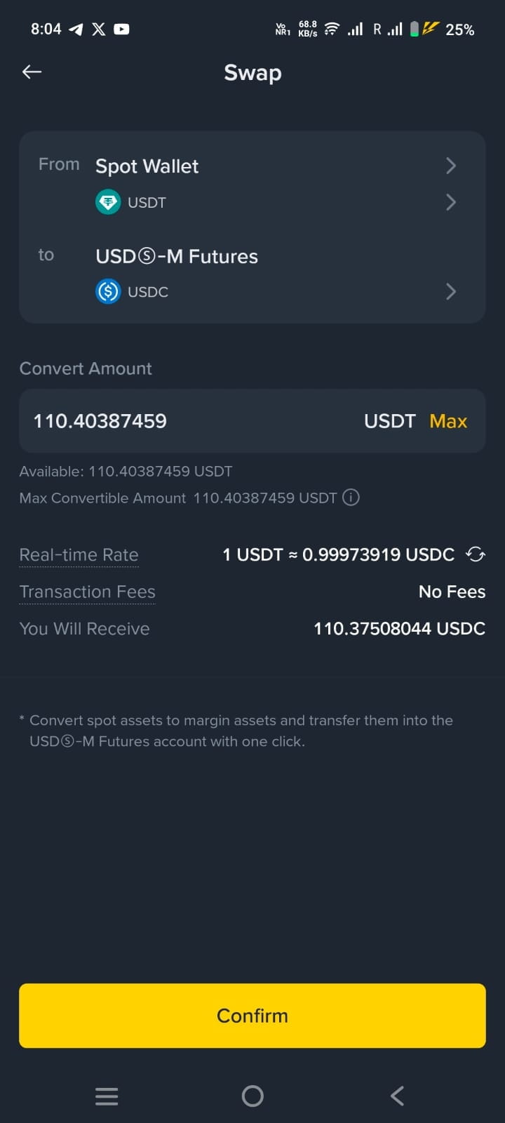 2- Não há taxas necessárias para converter sua pequena quantia em BNB