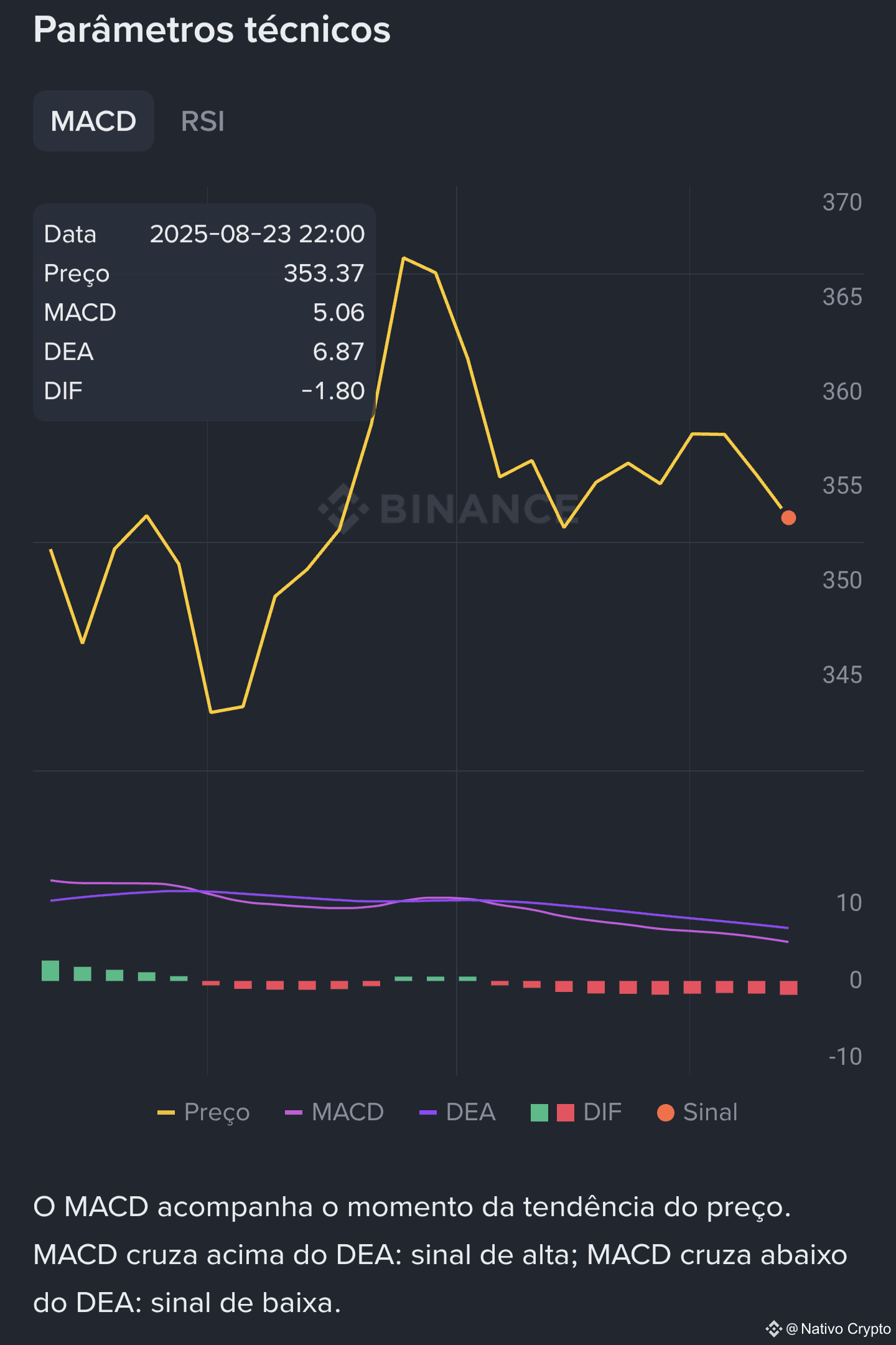 1. Fraqueza técnica: O histograma MACD da AAVE é negativo (-1,80) e o RSI6 está abaixo de 50 (39,98) às 08-24 01:00 (UTC+0), indicando enfraquecimento do impulso de alta e potencial para correção adicional de preços.
