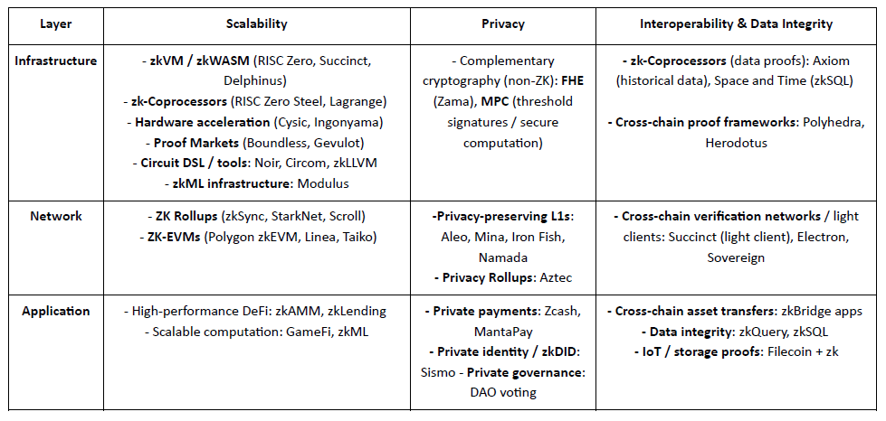 II. O panorama de aplicações da tecnologia ZK: escalabilidade, privacidade e interoperabilidade